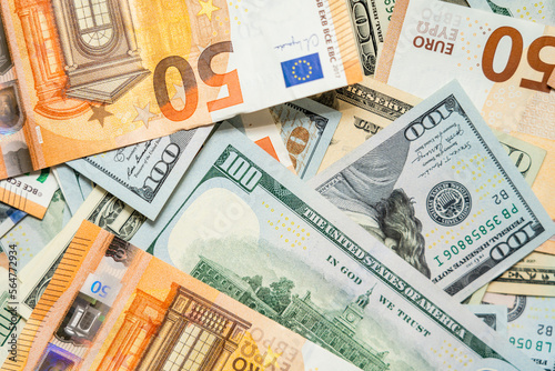 Background щf money pile dollar and euro bills