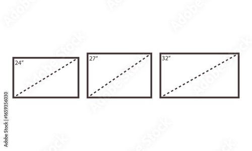 Background symbols and icons for LCD screen sizes. 24, 27, and 32 inches. Monitor and smart TV sizes