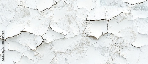 Background texture Surface featuring white aged cracked paint Top view Copy space