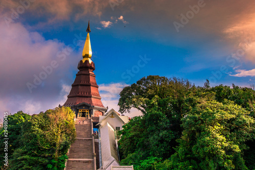 Background view of close-up tourist attractions, Landmark in Chiang Mai, near Doi Inthanon (Pra Mahatat Noppamethanedon and Pra Mahatat Nopphonphusiri), Thailand.