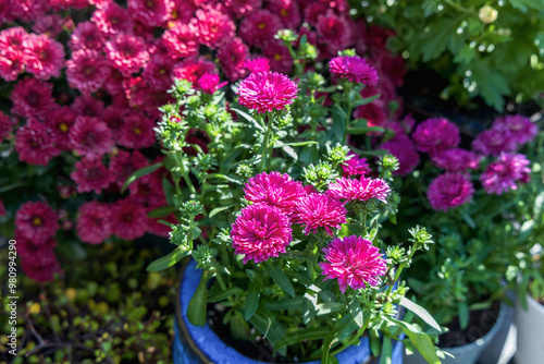 Background with beautiful autumn flowers asters