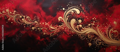 Background with red, golds and black swirls.