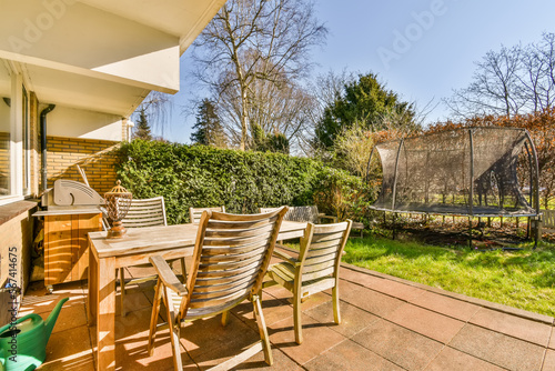 Backyard of modern house in countryside
