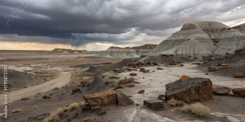 Badlands Road Under Threatening Clouds