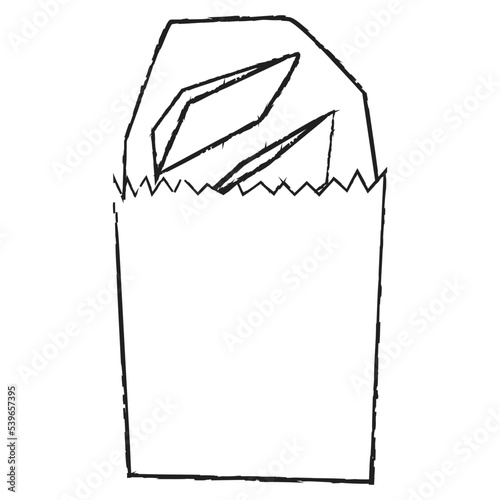 Baguette bread with paper bag vector illustration in line stroke design