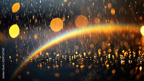Bainbow forms as sunlight shines through raindrops, creating magical scene