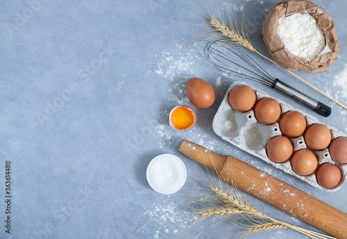 Bakery background top view raw ingredients for cooking pie