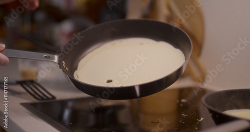 Baking a Pancake in a Pan Close-Up
