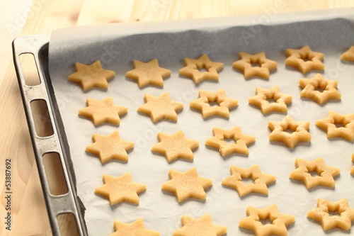 Baking cookies for Christmas. Cookies on baking sheet.