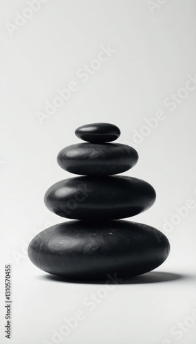 Balanced black coal pyramid on white, Zen stones , energy, quiet