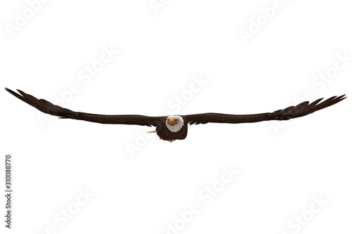 Bald eagle flying isolated on white 3d illustration