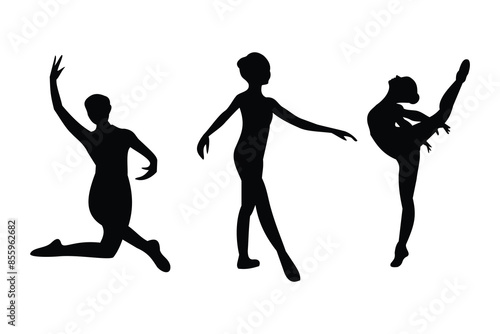 ballet dance silhouette set design, black and white with various styles, editable vector eps 10