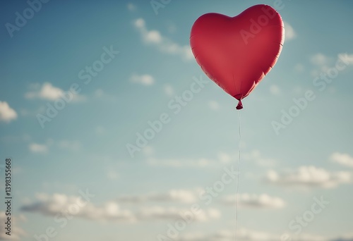 ballon blue sky red shaped heart happy aerial view anniversary balloon round birthday heart-shaped shape surprise fly declaration of love amusement festive cardiac engagement decoration celebrate