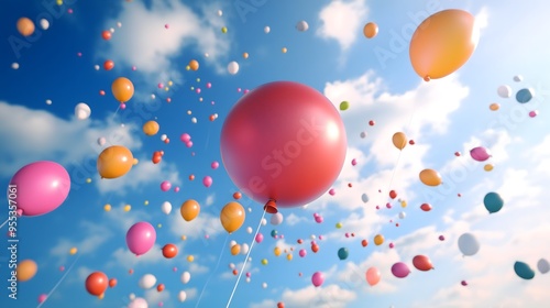 Balloons close-up, in the blue sky, celebration background, birthday background, festival background, gift background