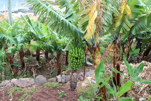 Bananenstaude, grüne Bananen, Bananenpflanze, Staude