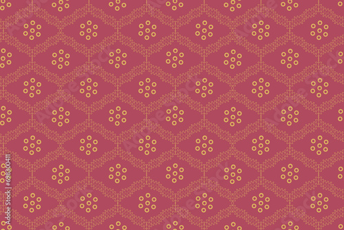 Bandhni floral seamless pattern. Indian Gujarati, Jaipuri style pattern in pink and gold