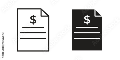 Bank statement icons collection. Thin linear and black flat icons