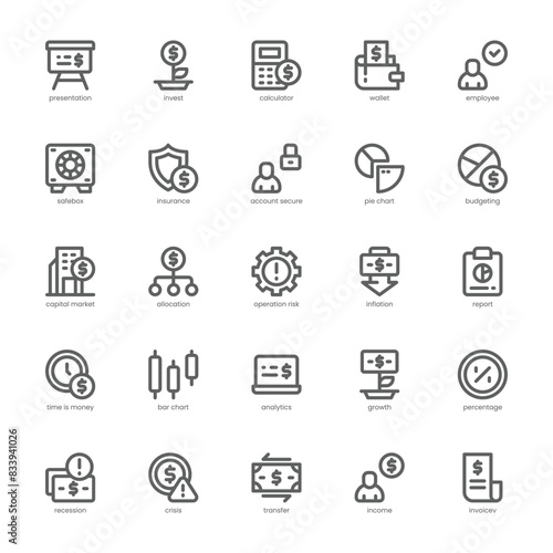 Banking and Finance icon pack for your website, mobile, presentation, and logo design. Banking and Finance icon outline design. Vector graphics illustration and editable stroke.