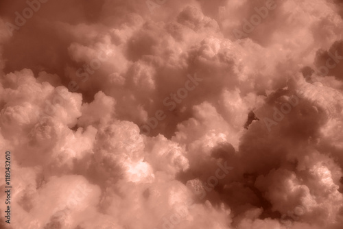 Banner. Color of the year, 2025, mocha mousse,. Sky cloudy background, dark clouds for rainy weather and sad mood