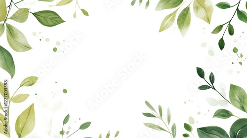 Banner featuring a clean white background with scattered green leaves and a central text space. picture