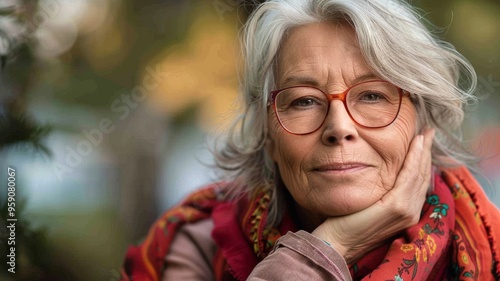 banner portrait of an elderly woman with gray hair