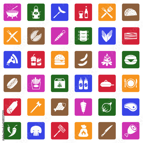 Barbecue And Grill Icons. White Flat Design In Square. Vector Illustration.