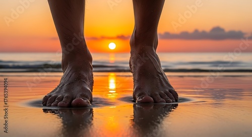 Barefoot Serenity - Embracing the Sunsets Warmth on the Shore.