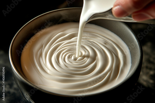 Barista preparing cappuccino with milk foam art in elegant cup, creating latte design with precision and care, generative ai