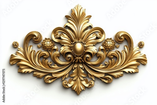 Baroque ornament with intricate leaf and flower designs in golden finish