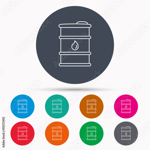Barrel of oil icon. Cask with water drop sign.