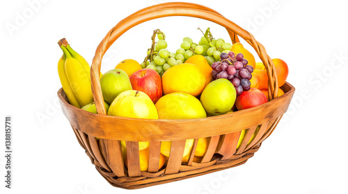Basket Filled with Assorted Fruits on Transparent Background, Fresh Colorful Fruit Collection Illustration