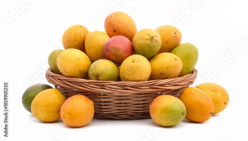 Basket Filled with Ripe Mangoes Isolated on White Background