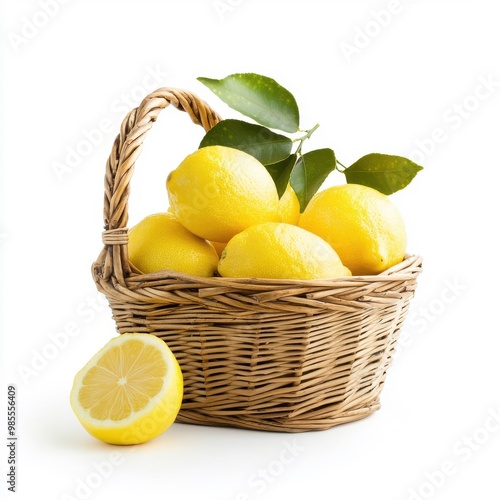 Basket of lemons, isolated on a white background.