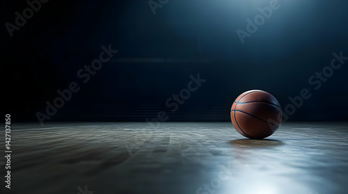 Basketball On Court Under Spotlight