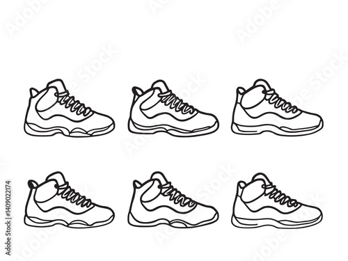 Basketball shoes set line art