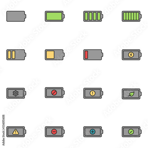 Battery Filled Line Icon Set Vector