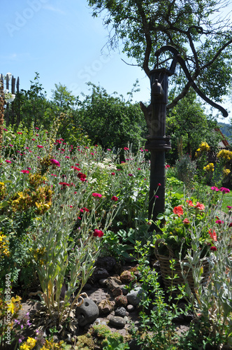 Bauerngarten mit Gartenpumpe
