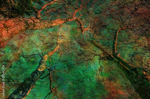 Baumstämme Winter abstrakt Mehrfachbelichtung