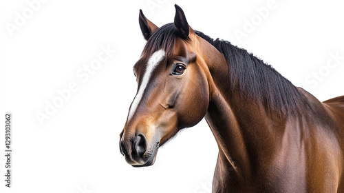 Bay horse in a clean, minimalist composition, symbolizing elegance and simplicity.
