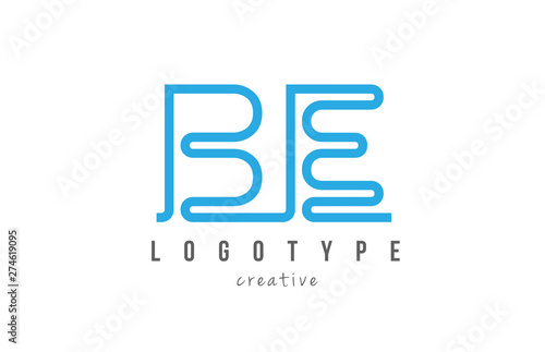 BE B E blue joined line alphabet letter combination logo icon design