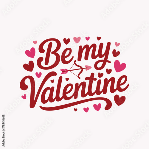 Be my Valentine text with cupid arrow and hearts in red and pink colors love vector illustration.