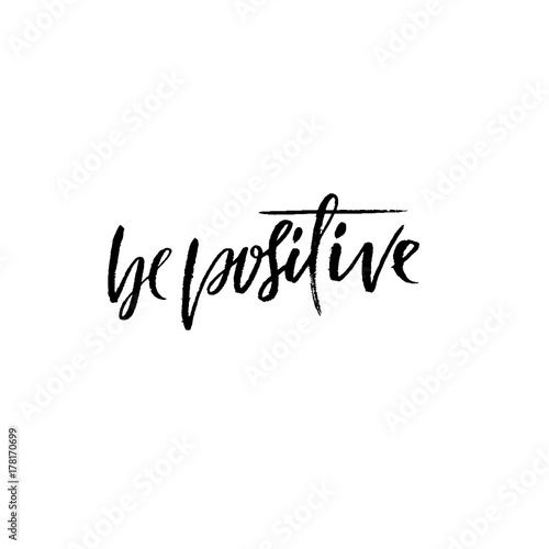 Be positive. Inspirational quote. Dry brush calligraphy phrase. Simple lettering in boho style for print and posters. Typography poster design. Vector illustration.