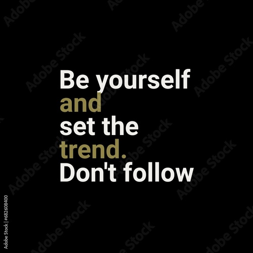 Be yourself and set the trend. Don't follow. Motivational quotes for motivation, success, social media posts, t-shirts design, and social meida stories.
