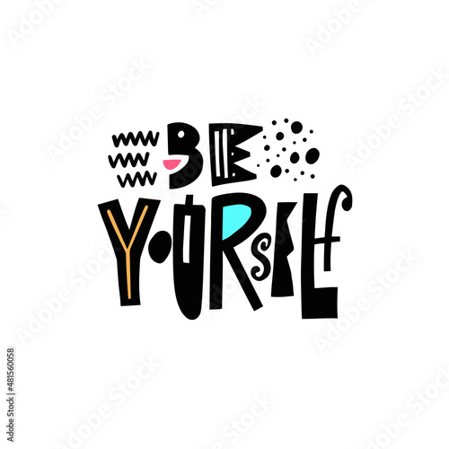Be Yourself. Modern Scandinavian typography poster. Colorful lettering text on white background.