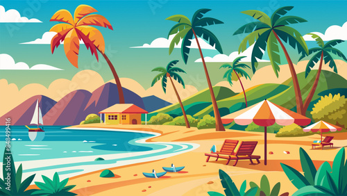 Beach Design Banner With Hello summerBeach Design Banner With Hello summer