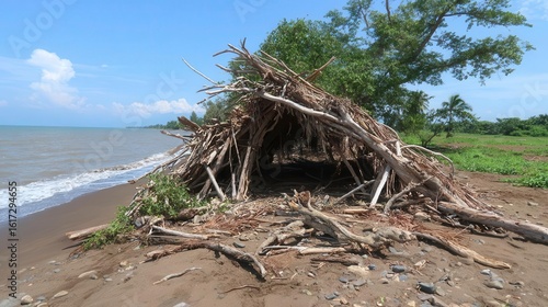 Beach Hut Structure, Coastal Nature, Tropical Getaway