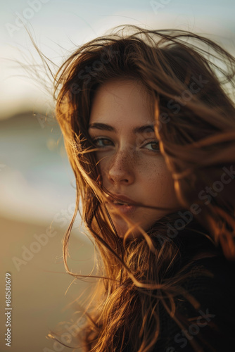 Beach Serenity, Close-Up of Wind-Swept Hair at Sunset