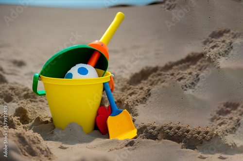 Beach toys in the sand, vacation with children. generate by ai