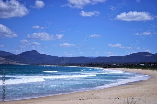 beach, waves and mountains