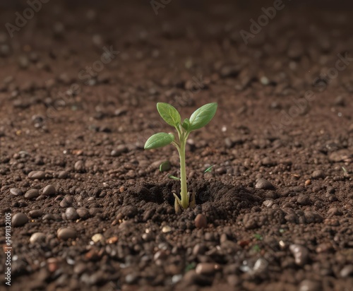 Bean seed sprouting in soil, early growth stage, macro, bean, seedling stage